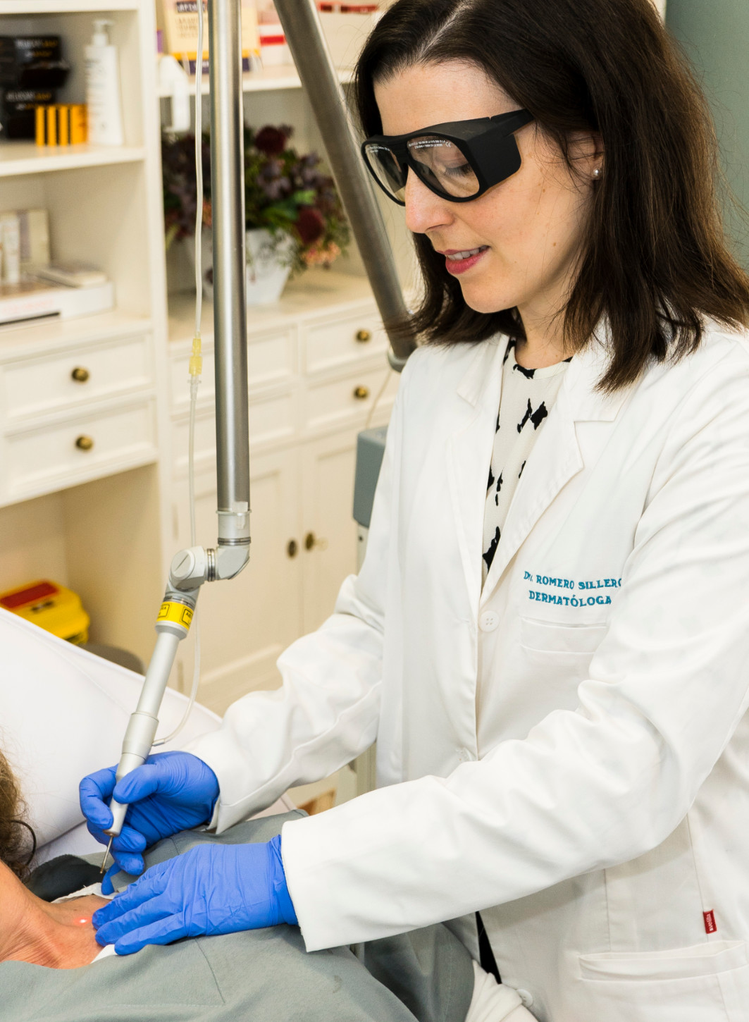 Láser de erbio fraccionado. Para el tratamiento ablativo del envejecimiento facial, mejorando la calidad de la piel, y para el tratamiento de cicatrices (postacné y otras), estrías, etc.